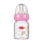 بی بی لند شیشه شیر (شیر خوری) پیرکس (شیشه ای) ضد نفخ (آنتی کولیک) فندقی (گرد) صورتی سایز 1 مناسب نوزادان 0 تا 6 ماه 60 میلی – کد 435