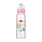 بی بی لند شیشه شیر (شیر خوری) پیرکس (شیشه ای) ضد نفخ (آنتی کولیک) فندقی (گرد) صورتی سایز 3 مناسب نوزادان 6 تا 18 ماه 240 میلی – کد 437