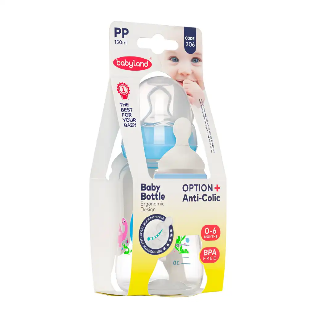 بی بی لند شیشه شیر (شیر خوری) ضد نفخ (آنتی کولیک) اورتودنسی مناسب نوزادان 0 تا 6 ماه 150 میلی – کد 306