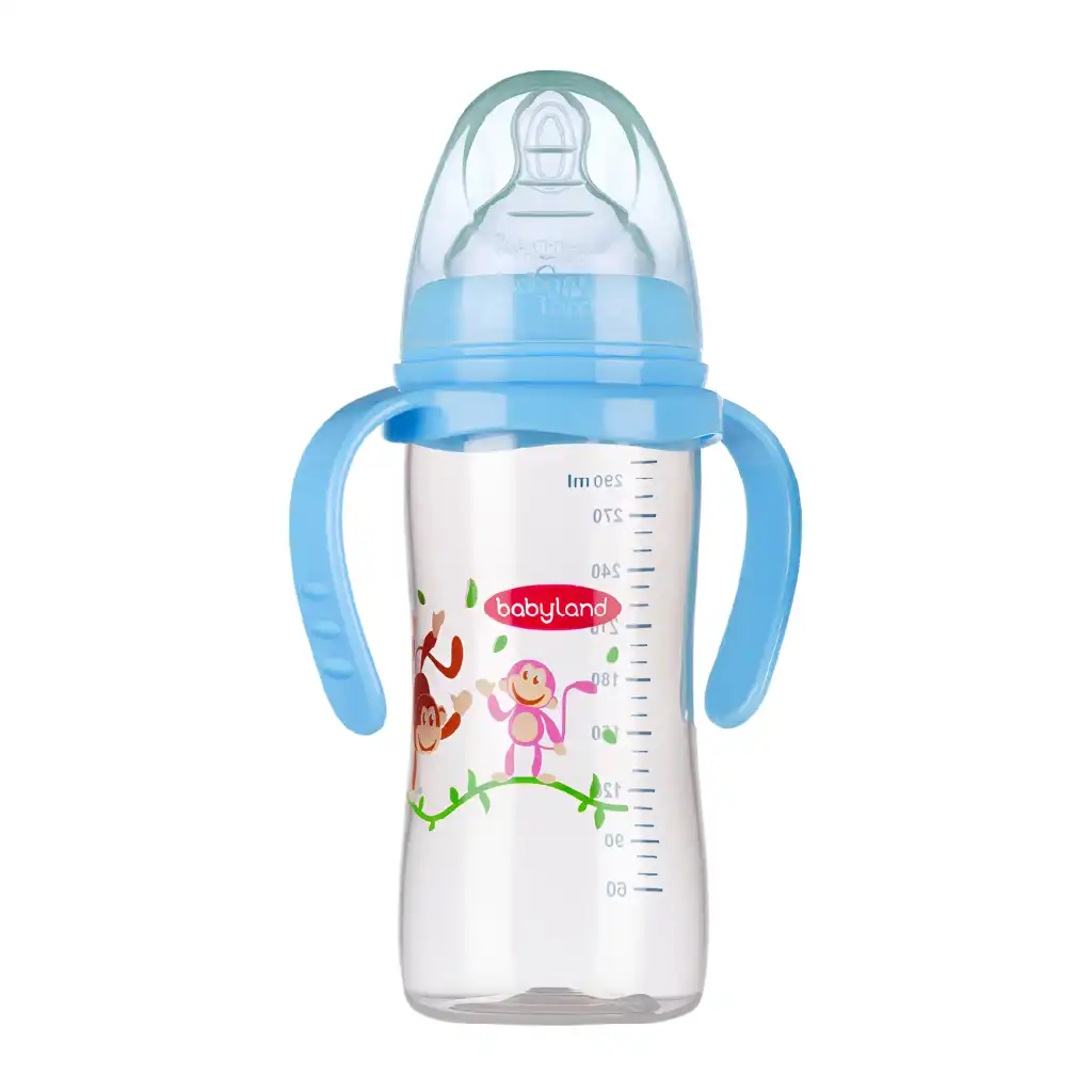شیرخوری ارتودنسی دسته دار دهانه عریض بی بی لند برای رده سنی ۰ الی ۶ ماه و ۶ الی ۱۸ ماه مناسب می باشد و در حجم ۱۵۰ میلی لیتر و ۳۰۰ میلی لیتر تولید شده است.
