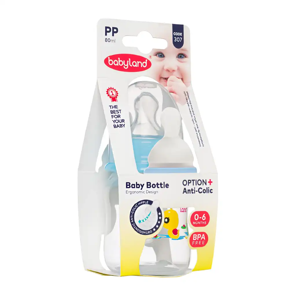 بی بی لند شیشه شیر (شیر خوری) ضد نفخ (آنتی کولیک) ارتودنسی مناسب نوزادان 0 تا 6 ماه 80 میلی – کد 307