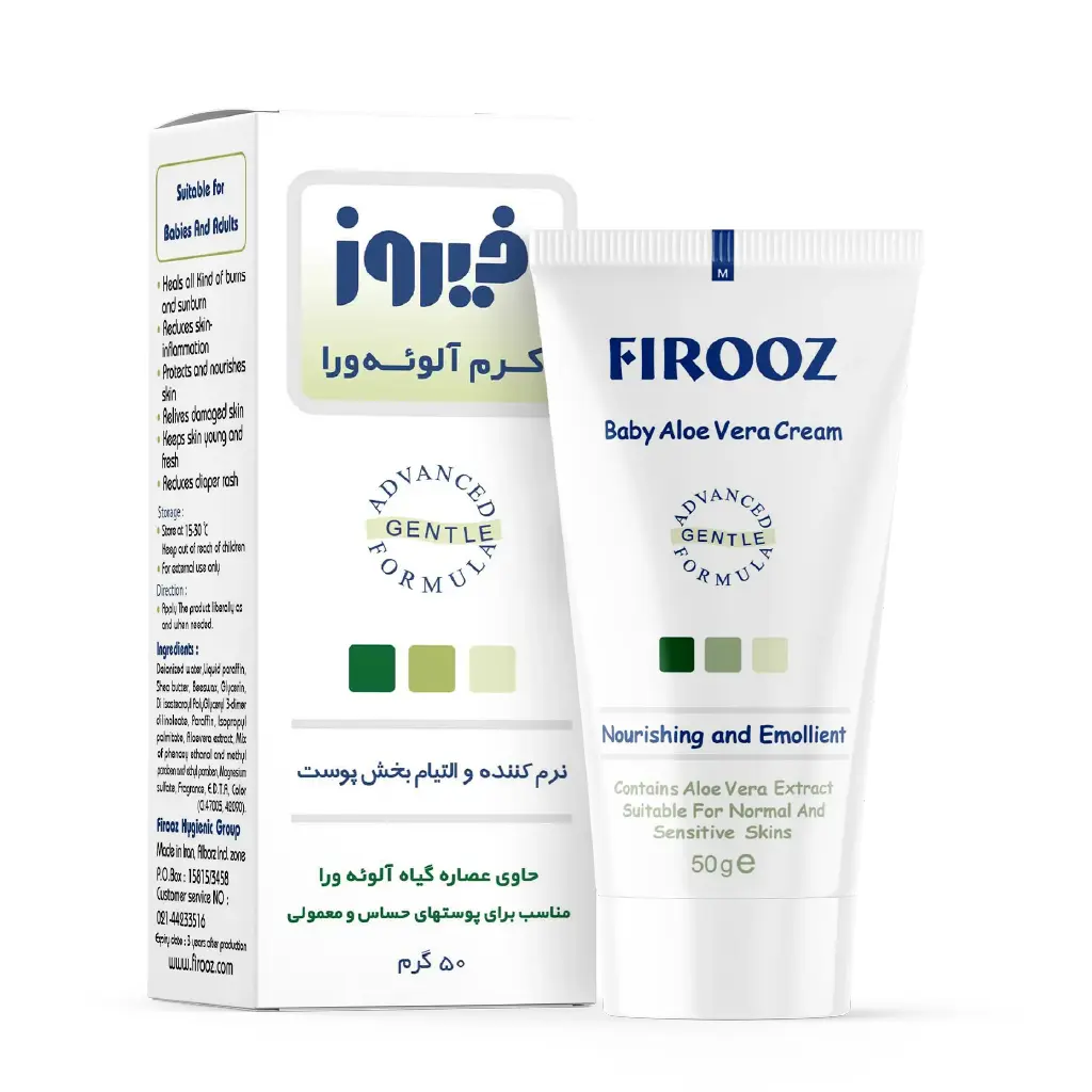 فیروز کرم آلوئه ورا بچه نرم کننده و التیام بخش پوست مناسب برای پوستهای حساس و معمولی 50 گرم