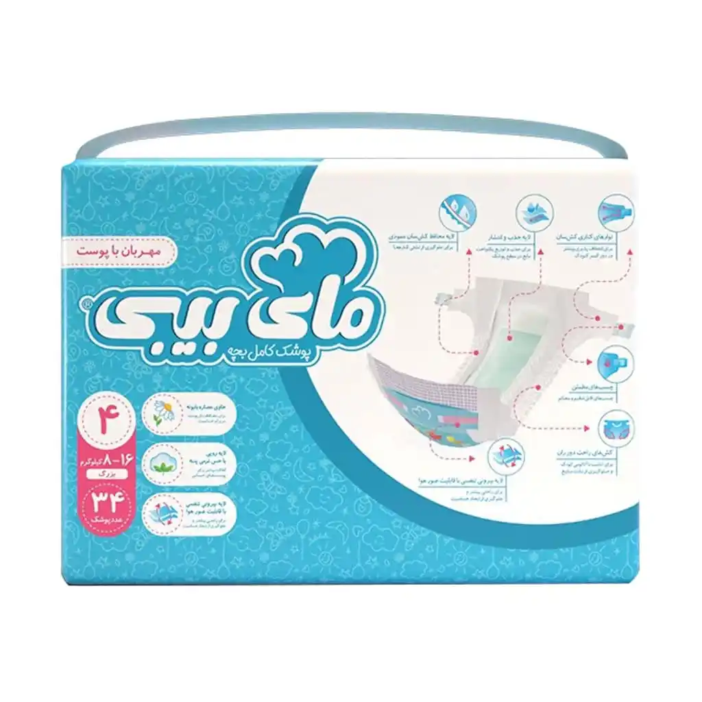 - مای بیبی سایز 4، بسته بندی 12 و 34 عددی