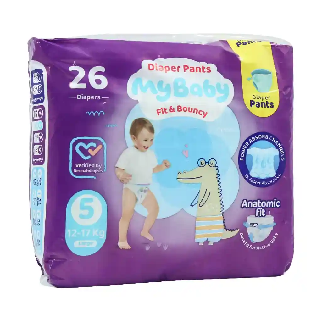 مای بیبی شورتی کانال دار سایز 5 بزرگ 12-17 کیلو 26 عددی